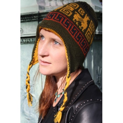 Bonnet Péruvien en Laine d’Alpaga, authentique et Réversible, également connu comme Chullo