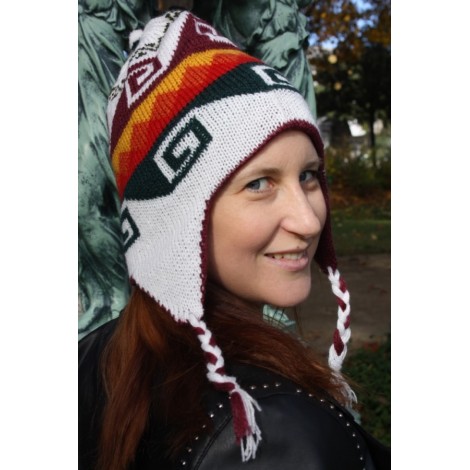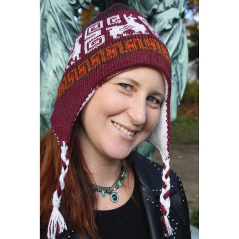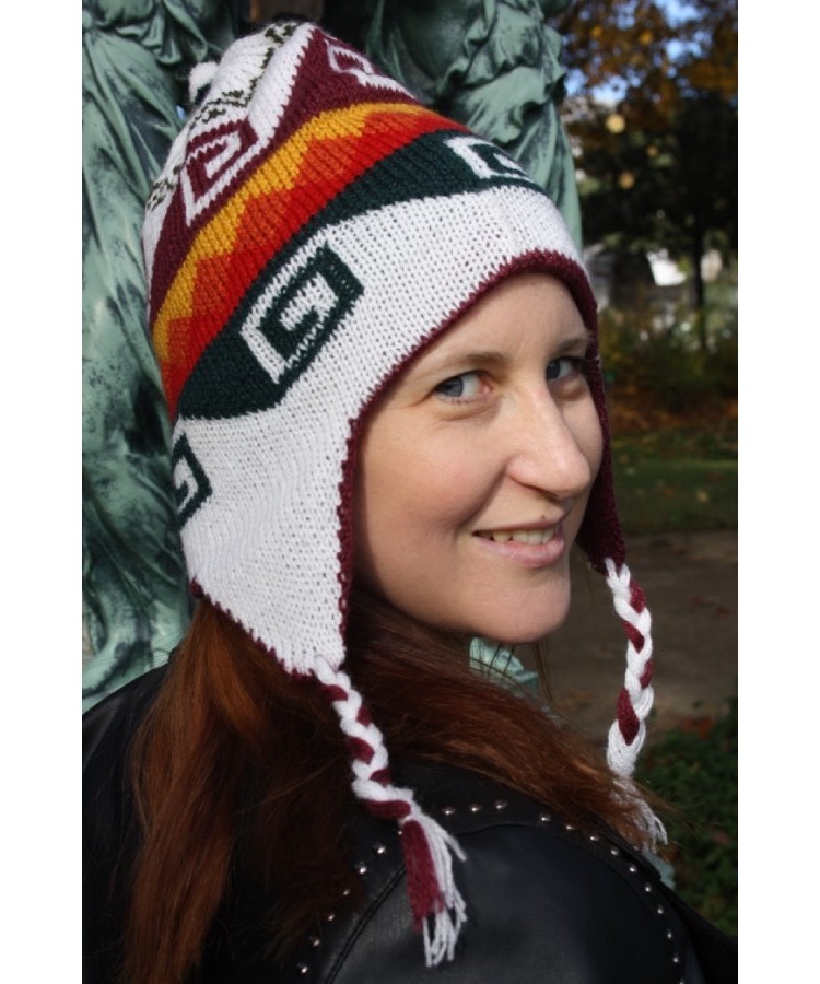 Bonnet Péruvien en Laine d’Alpaga, authentique et Réversible, également connu comme Chullo