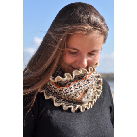 Pour positionner votre bonnet, poser une extrémité de l'écharpe comme un bonnet sur votre tête et enrouler la suite de l'écharpe autour de votre cou.