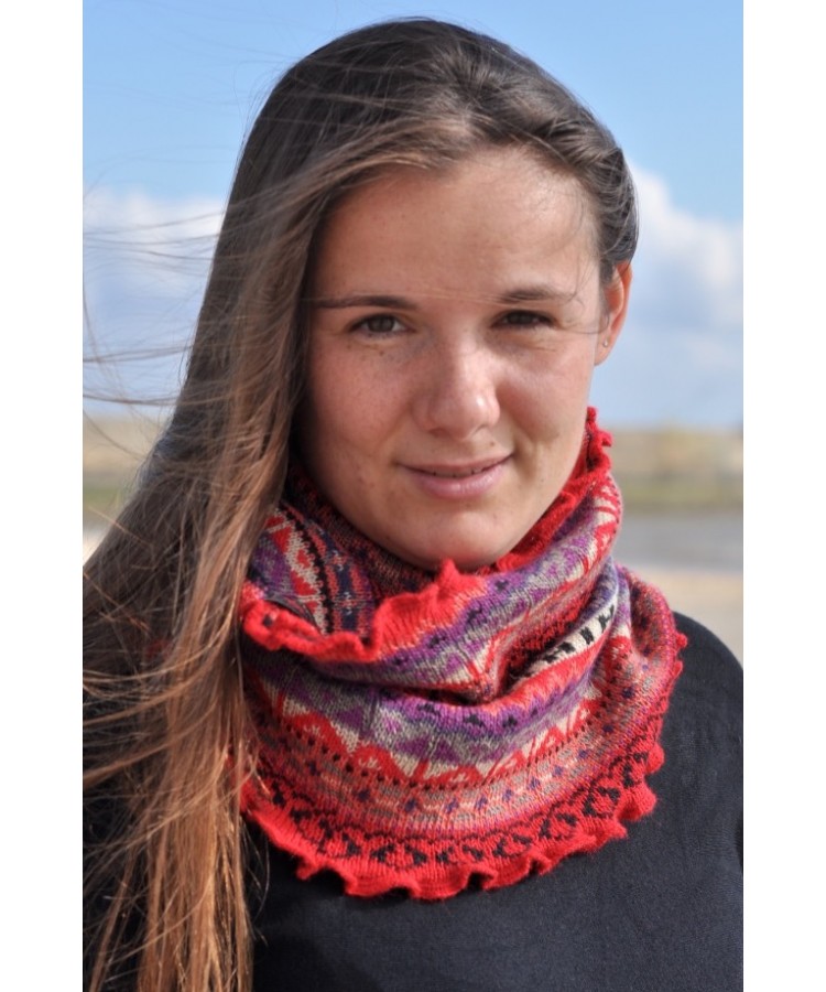 Écharpe ovale d’exception, véritable pièce de raffinement textile, tricotée à la main en laine d’alpaga d’une extrême finesse, reconnue pour sa douceur incomparable et son toucher soyeux.