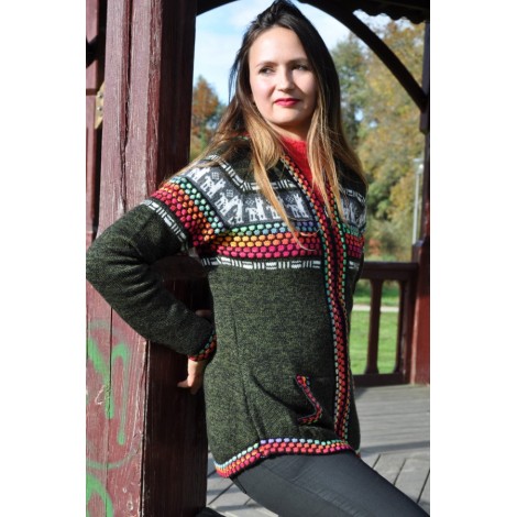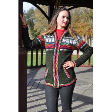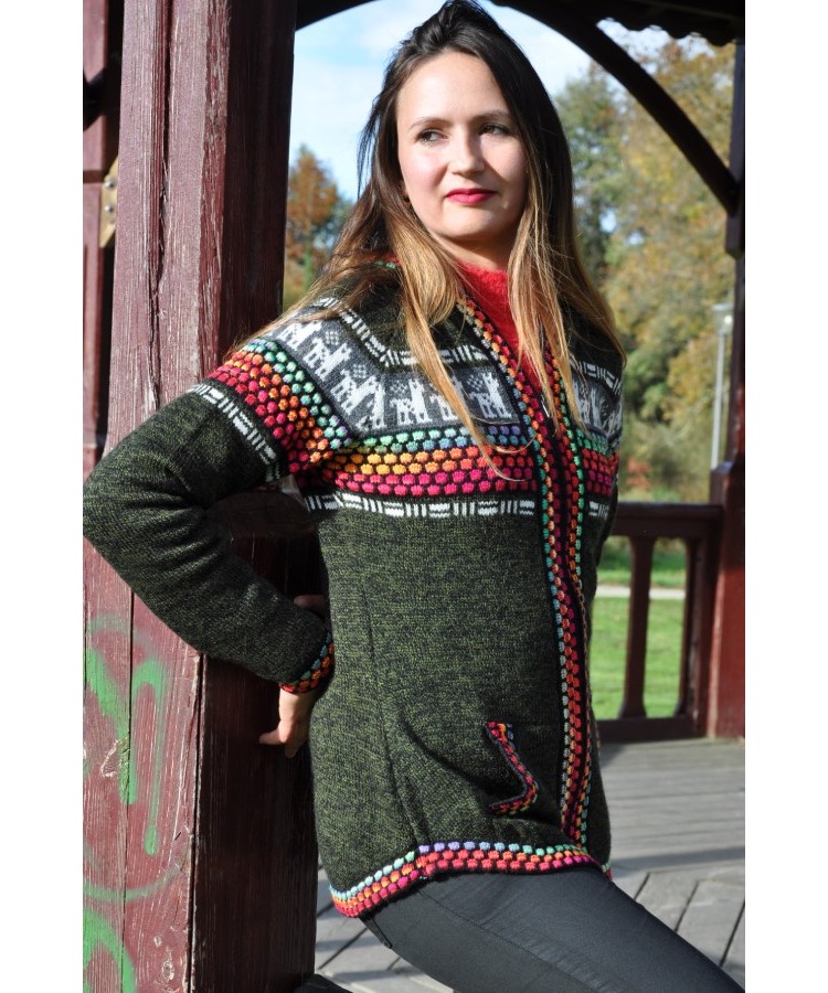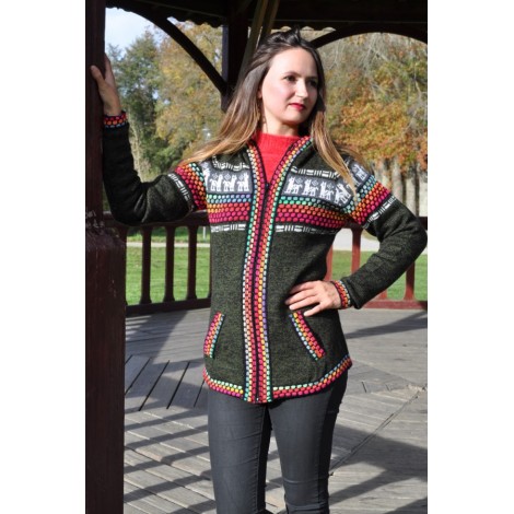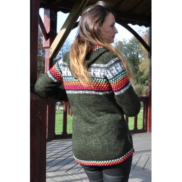 Le gilet original avec des couleurs typiques des Andes - Couleur vert olive.