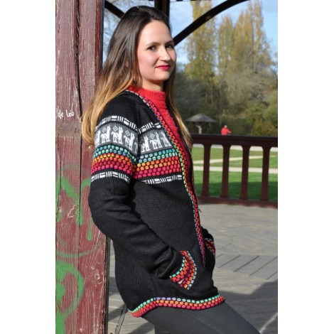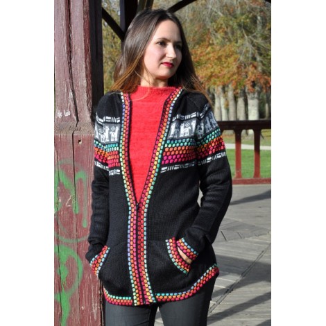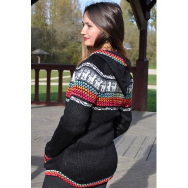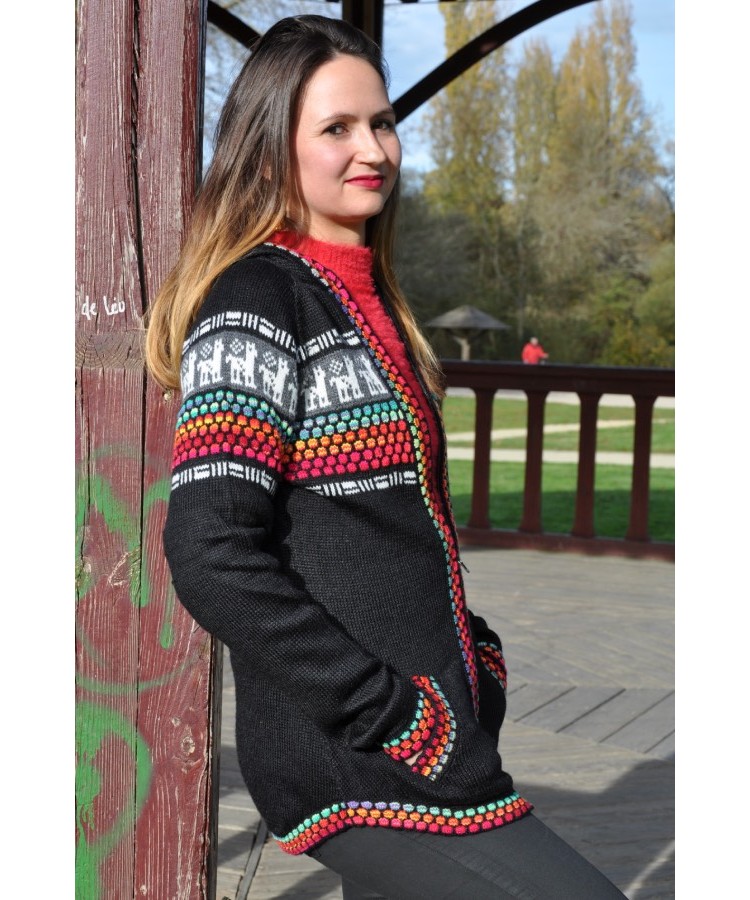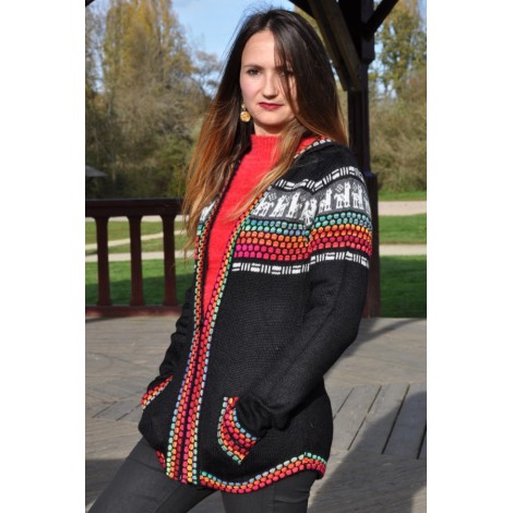 Le gilet original avec des couleurs typiques des Andes - Couleur noir azabache.
