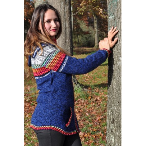 Le gilet original avec des couleurs typiques des Andes - Couleur bleu chiné.