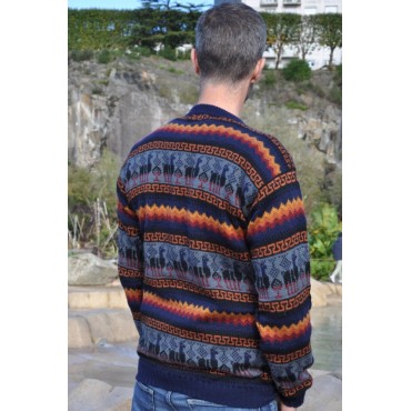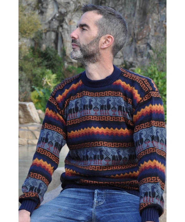 L'incontournable pull péruvien col rond avec des motifs typiques des Andes.