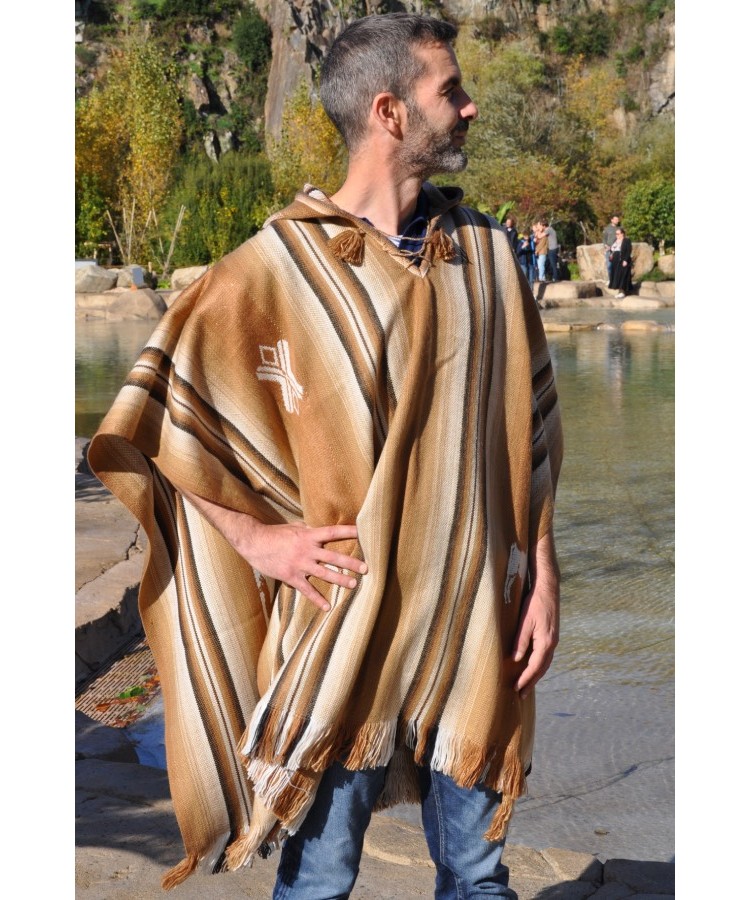 Poncho tissé à la main, sur métier à tisser manuel, technique ancestrale.