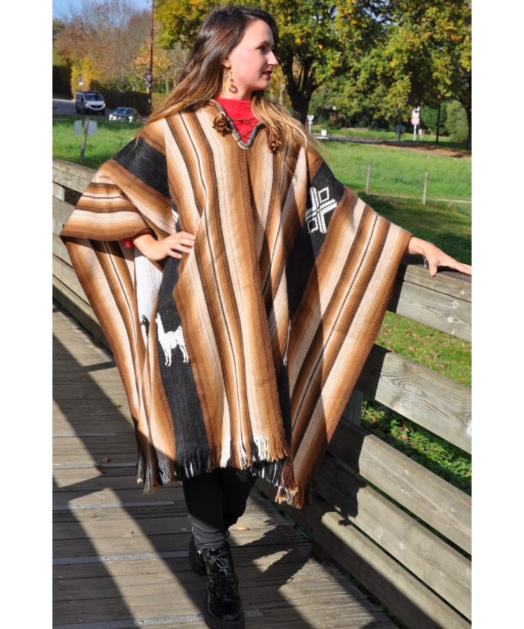 Authentique Poncho péruvien tissé en laine d'alpaga