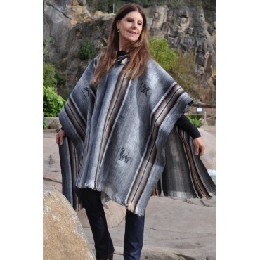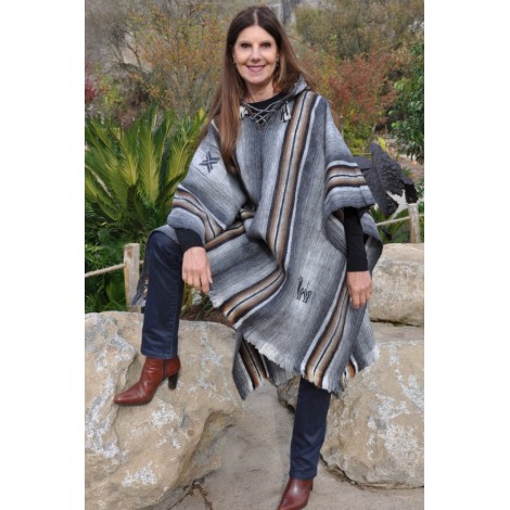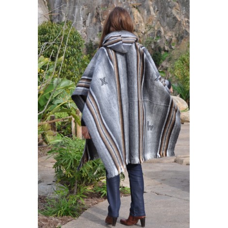 Poncho Pachamama avec sa capuche gris à rayures