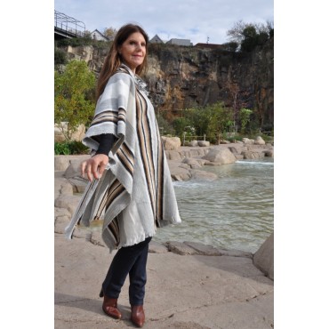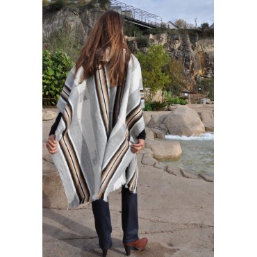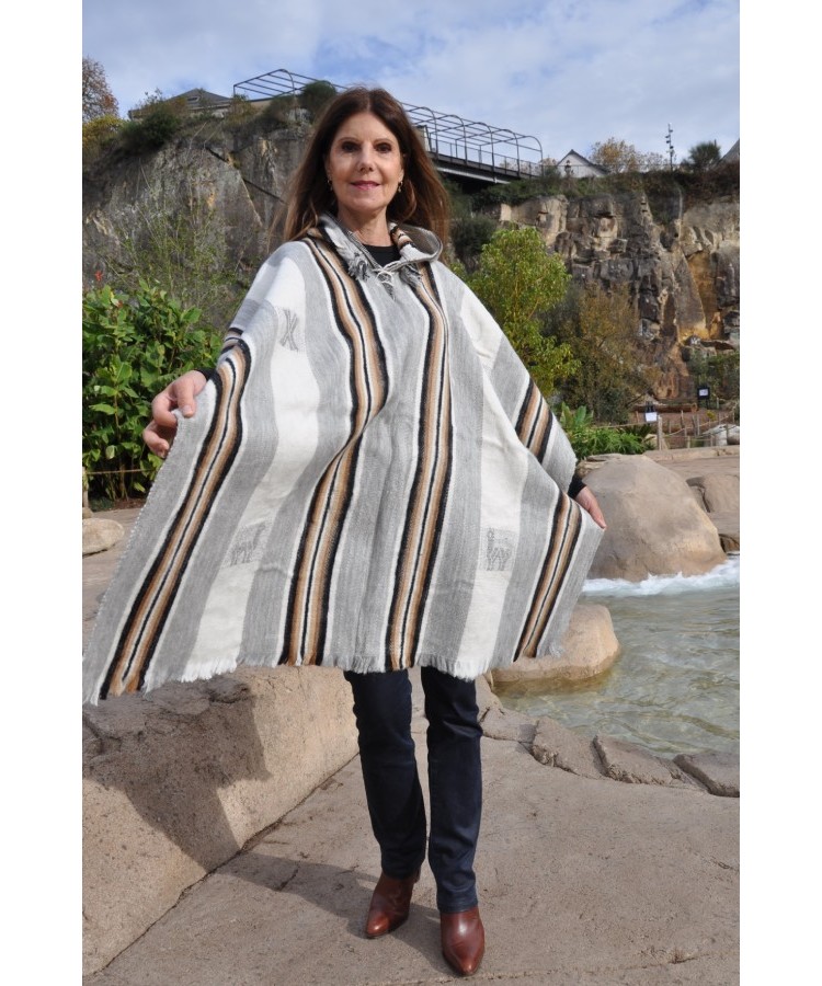 Poncho Pachamama gris argenté avec sa capuche à rayures
