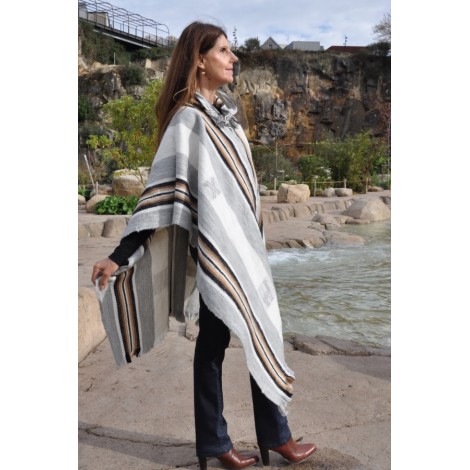 Manos del perù vous propose ce poncho péruvien réalisé de façon manuelle sur un métier à tisser dans la plus pure tradition péruvienne.