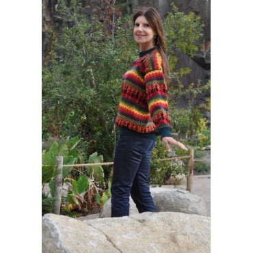 La laine d'alpaga associée à la laine acrylique donne une maille d'excellente tenue et d'entretien facile.