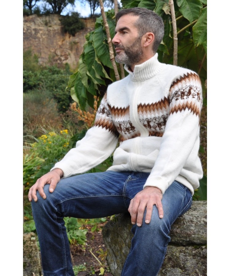 Cardigan en laine d’alpaga d’une douceur exceptionnelle ; plus qu’une simple laine, c’est un véritable don des dieux. Soyeuse et chaleureuse, sa fibre, plus fine que toute autre, enveloppe le corps d’un confort rare et raffiné.